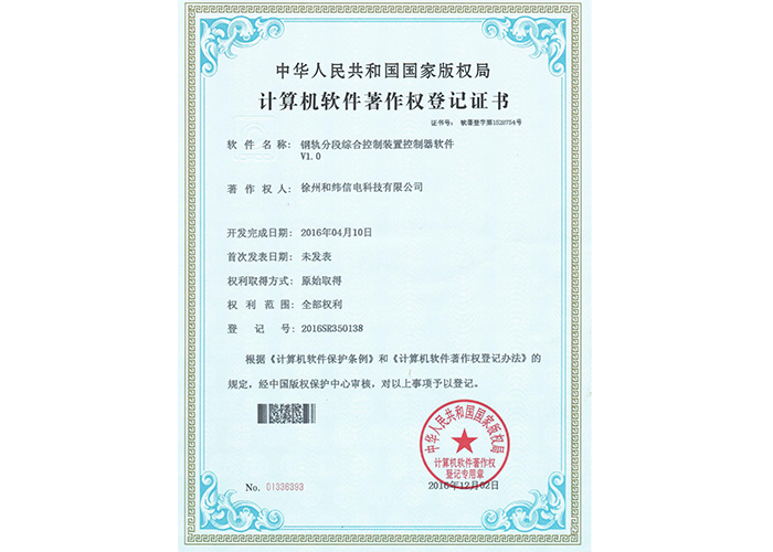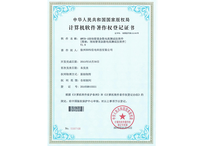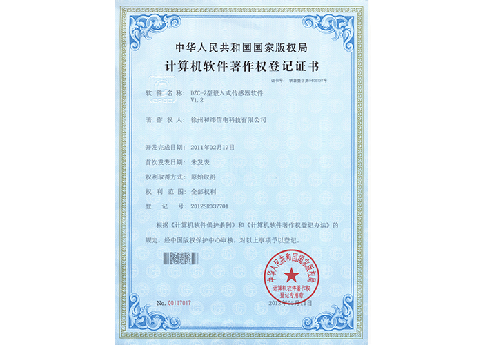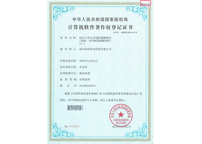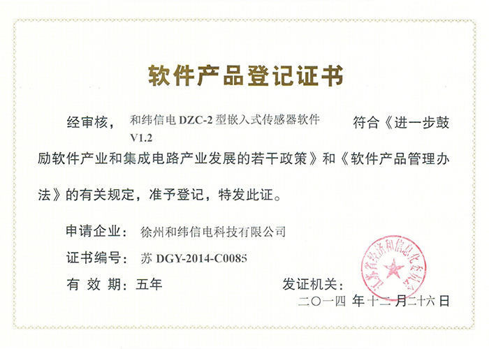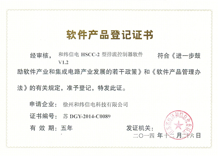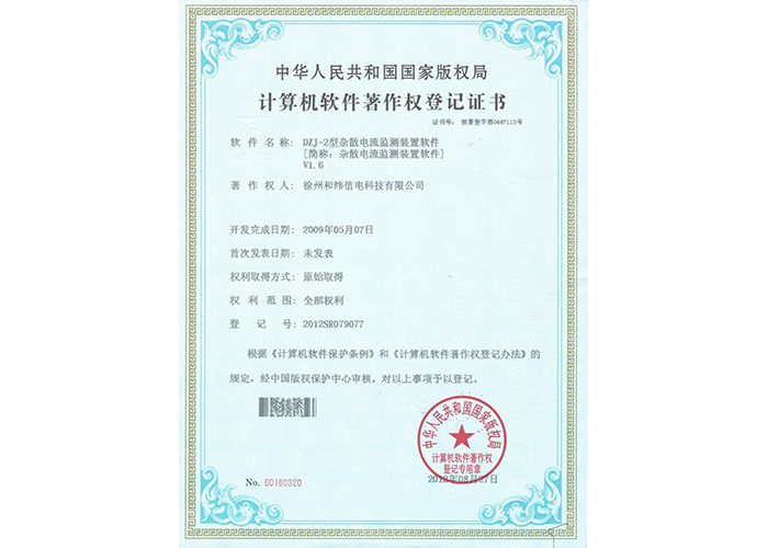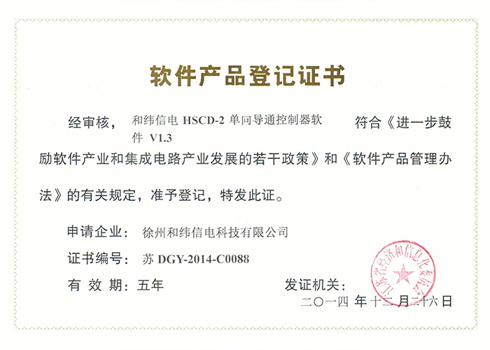 2012SR037701 DZC-2型嵌入式傳感器軟件V1.2 10軟件產(chǎn)品登記證書——和緯信電HSCC-2型排流控制器軟件V1.2 10軟件產(chǎn)品登記證書——和緯信電HSCD-2單向?qū)刂破鬈浖1.3
